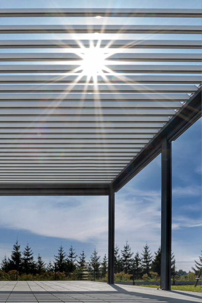 A stylish terrace with a movable roof, atmospheric lighting, and screens. A pergola is a luxury relaxation zone – perfect for coffee, a book, and long evenings.